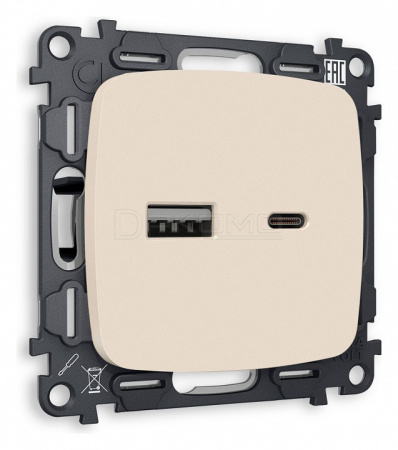 Розетка 2хUSB type A и C без рамки OMEGA MO331010