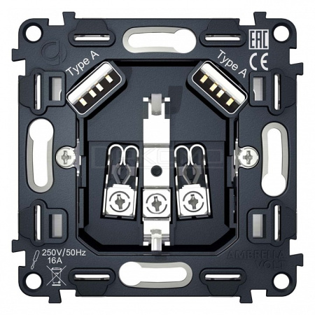 Механизм розетки с заземлением и 2хUSB type A QUANT VM155