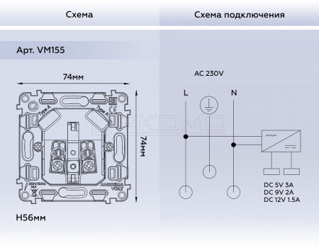 - Д:74 x Ш:74 x В:56