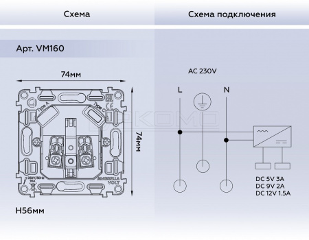 - Д:74 x Ш:74 x В:56