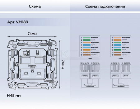 Механизм розетки телефонной RJ-11 со шторкам QUANT VM189