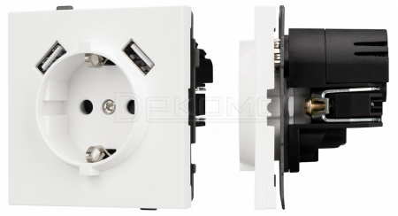Розетка с заземлением и 2хUSB type A, без рамки SCT-TENDO 054606