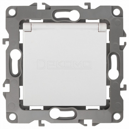 Розетка с заземлением и со шторкой, без рамки с крышкой Эра 12 12-2103-01