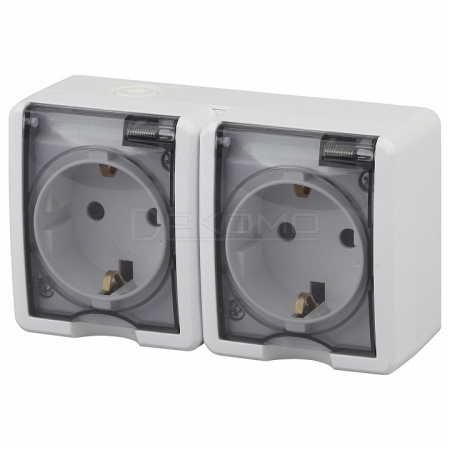 Розетка двойная с заземлением и со шторками, с крышкой Эра Эксперт 11-2404-01