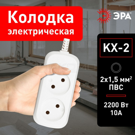 Колодка ЭРА без заземления. Максимальная мощность - 10 А/2200 Вт. Для кабеля до 2х1мм2