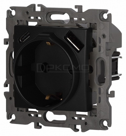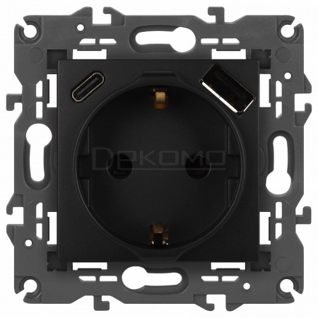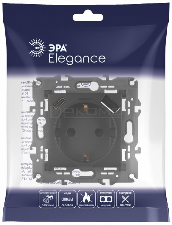 Розетка с заземлением и со шторкой и 2хUSB, без рамки Эра Elegance 14-4108-05