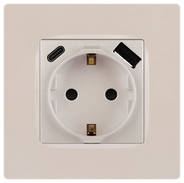 Розетка с заземлением и со шторкой и 2хUSB, без рамки Эра 12 12-4108-15