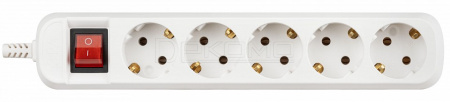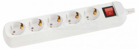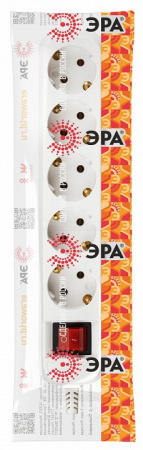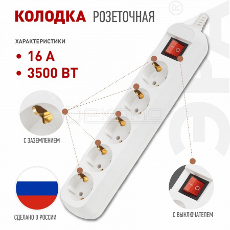 Колодка ЭРА KX-5es на 5 розеток с заземлением с выключателем белая. Максимальная мощность - 16 А/3500 Вт. Для кабеля до 3х1,5мм2