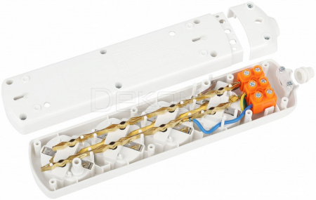Колодка электрическая Эра K-4e с заземлением, 4 розетки. Корпус выполнен из ударопрочного и негорючего пластика. Рассчитана на максимальную мощность 16А / 3500 Вт и для подключения кабеля сечением до 1,5мм2. Электрическая колодка подойдет для тех, кто хочет сделать удлинитель самостоятельно. Также может использоваться как накладные розеточные блоке в подсобных помещениях.