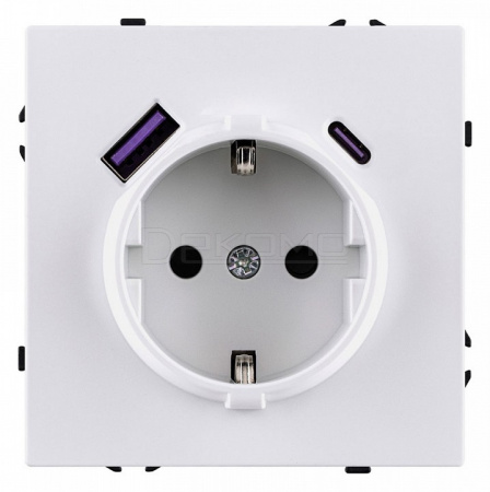 Розетка с заземлением и со шторкой и 2хUSB type A и C, без рамки Eclipse EC-016WG