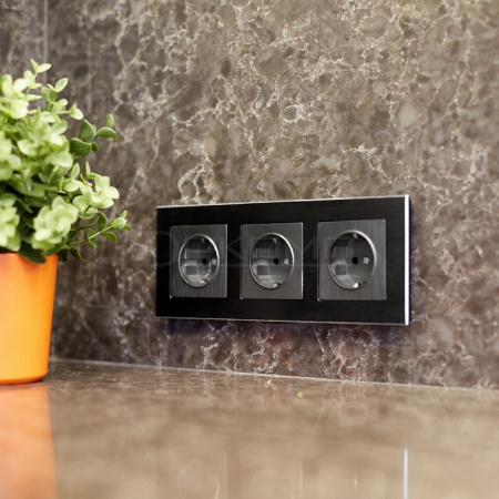Накладка для розетки с заземлением и 2хUSB графит рифленый W1179504