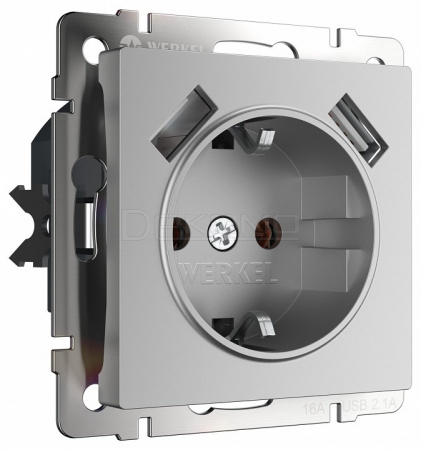 Розетка с заземлением и со шторкой и 2хUSB, без рамки W1171506