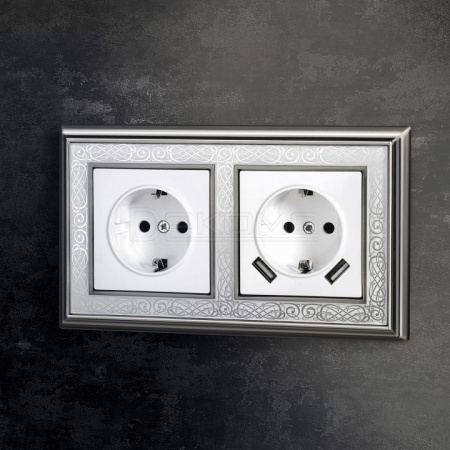 Розетка с заземлением и со шторками и 2хUSB, без рамки белый W1171501