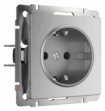 Розетка с заземлением, без рамки серебряный рифленый W1171009