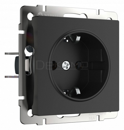 Розетка с заземлением и со шторками, без рамки черный матовый W1171108