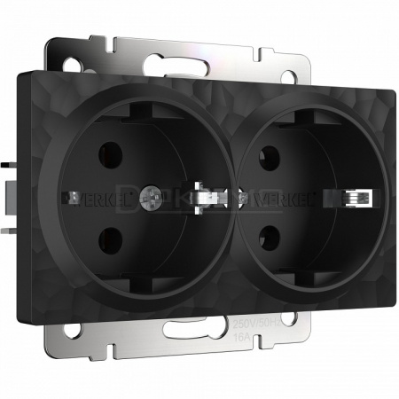 Розетка двойная с заземлением, без рамки Hammer черный W1272008