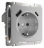 Розетка с заземлением и со шторками и 2хUSB, без рамки серебряный рифленый W1171709