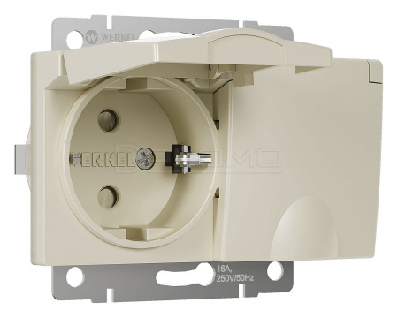 Розетка двойная влагозащищенная с заземлением и со шторками, без рамки с крышкой слоновая кость W1172203