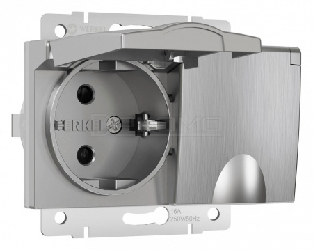 Розетка двойная влагозащищенная с заземлением и со шторками, без рамки с крышкой серебряный рифленый W1172209