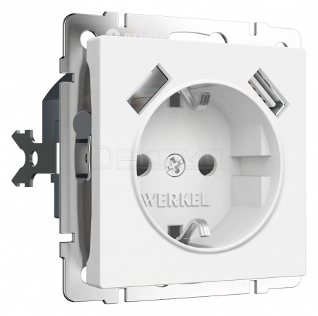 Розетка с заземлением и со шторками и 2хUSB, без рамки белый матовый W1171561