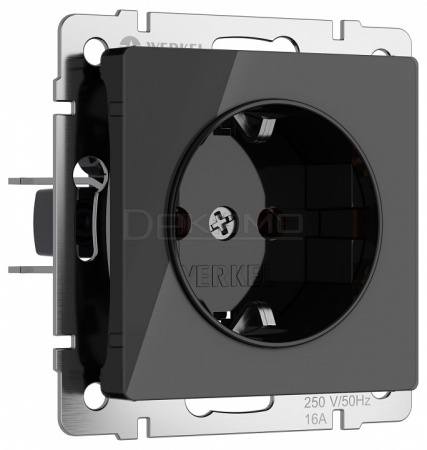 Розетка с заземлением и со шторками, без рамки черный акрил W1171148