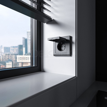 Розетка с заземлением и со шторкой, без рамки с крышкой графит матовый W1171264