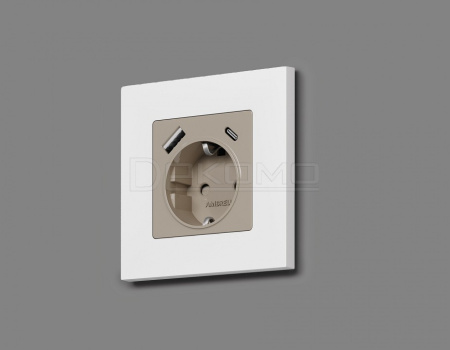 Накладка для розетки с заземлением и со шторками и 2хUSB type A и C ALFA AP3700