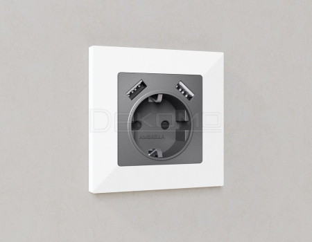 Накладка для розетки с заземлением и со шторками и 2хUSB type A ALFA AP6590