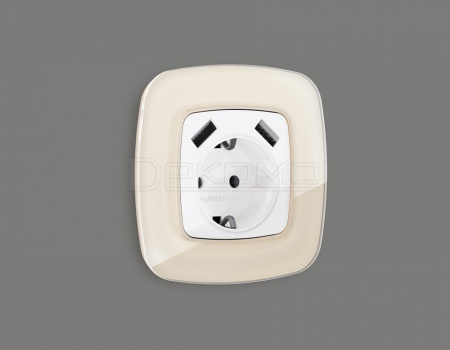 Накладка для розетки с заземлением и со шторками и 2хUSB type A OMEGA OP1090
