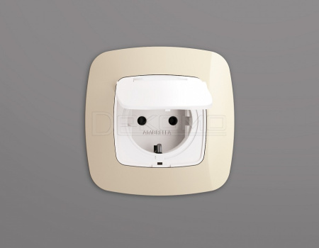 Накладка для розетки влагозащищенной с заземлением и со шторками с крышкой OMEGA OP1280