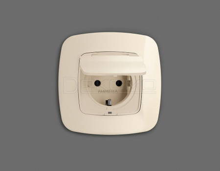 Накладка для розетки влагозащищенной с заземлением и со шторками с крышкой OMEGA OP3280