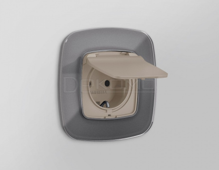 Накладка для розетки влагозащищенной с заземлением и со шторками с крышкой OMEGA OP3680