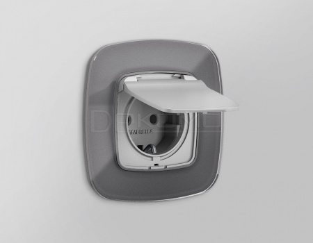 Накладка для розетки влагозащищенной с заземлением и со шторками с крышкой OMEGA OP4080