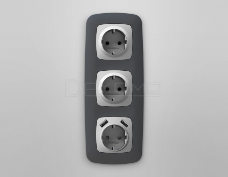 Накладка для розетки с заземлением и со шторками и 2хUSB type A OMEGA OP4090