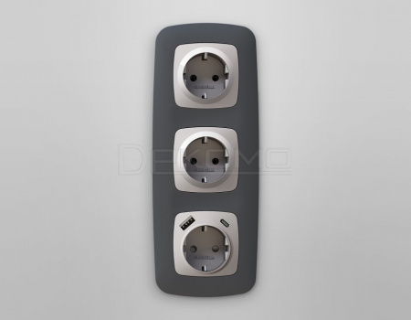 Накладка для розетки с заземлением и со шторками и 2хUSB type A и C OMEGA OP4100