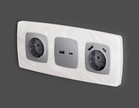 Накладка для розетки с заземлением и со шторками и 2хUSB type A и C OMEGA OP5100