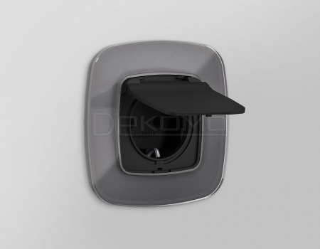Накладка для розетки влагозащищенной с заземлением и со шторками с крышкой OMEGA OP8080