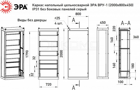 - каркас - 1 шт, монтажная панель 160 - 2 шт., монтажная панель 220 - 1 шт., швеллер перфорированный - 2 шт., уголок префорированный - 2 шт., рым-болт М10 DIN580 - 4 шт., стенка задняя - 1 шт