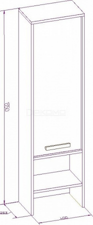 - 1 дверца, 4 полки