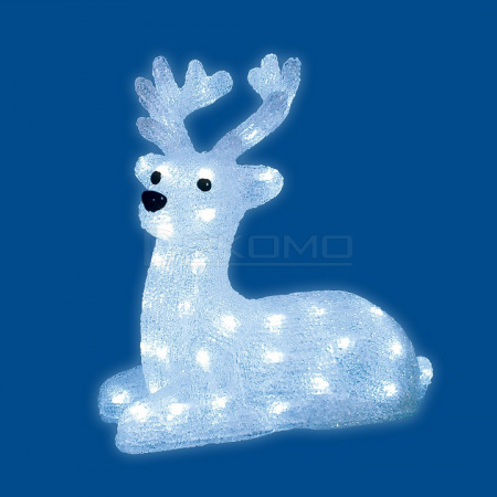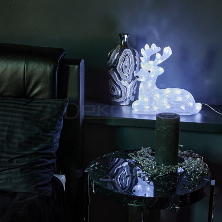 Акриловая фигура размером 31×15×33 см с 50 белыми светодиодами излучает мягкое свечение, напоминающее лунный свет на снежном покрове. Нежный лежащий олененок с изящными линиями станет трогательным украшением каминной полки, подоконника или праздничного стола. Его умиротворенная поза и гармоничные пропорции делают фигуру идеальной для создания уютных световых композиций в интерьере.