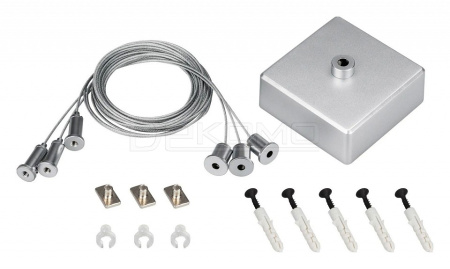 - накладная чашка (серебро) - 1шт., трос 2м - 3шт., винт с площадкой 9мм - 2шт