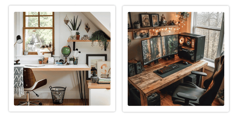 - декор: добавьте элементы, которые вдохновляют вас - это могут быть картины, растения или цитаты, прикреплённые на стену или пробковую доску