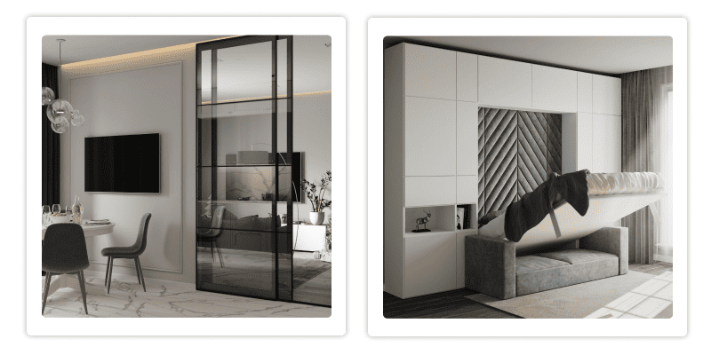 - Используйте мебель-трансформер (откидные столы, раскладные диваны)