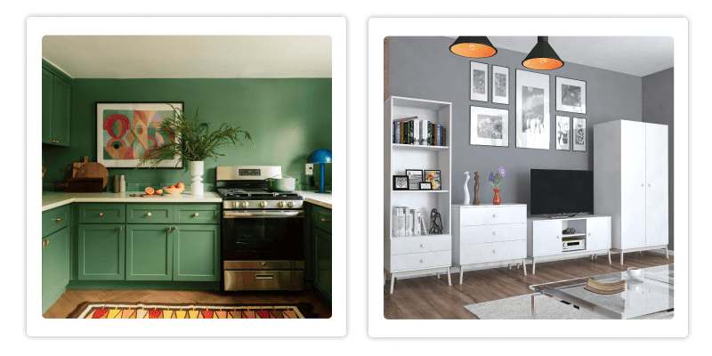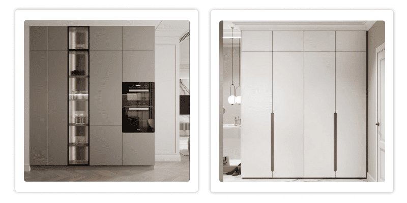 - Фасады шкафов в тон стен визуально разгружают пространство