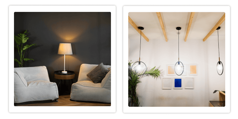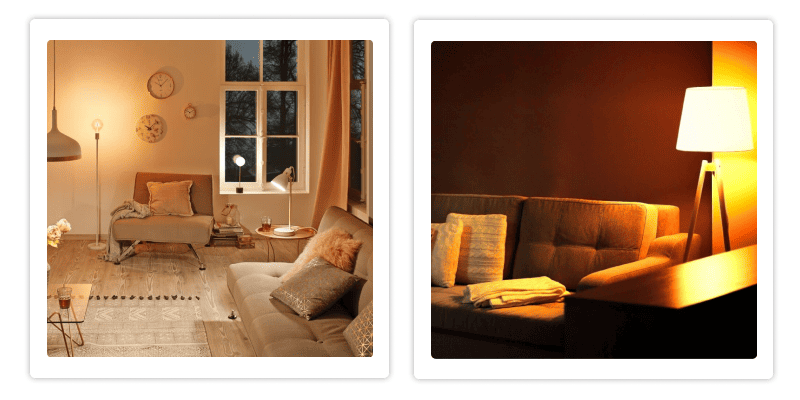 - Выбирайте светильники с тёплым светом в спальнях, гостиных и ресторанах. Это может быть как встроенное освещение, так и настольные лампы с мягким светом.
