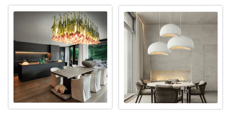 Светильники из натуральных материалов (дерево, металл, стекло) остаются в моде. Они подчёркивают эко-направленность дизайна и помогают создать гармоничную связь с природой.