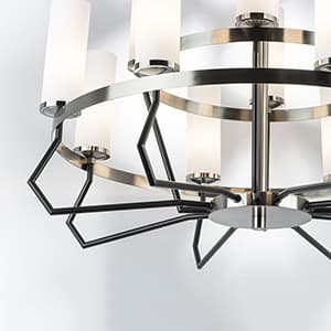 Для большего выбора при расчете пропорций в интерьере коллекция Flume включает в себя две люстры с аналогичным дизайном, но разным диаметром и количеством плафонов: 570 мм на 6, 750 мм на 8 и 850 мм на 12 плафонов.