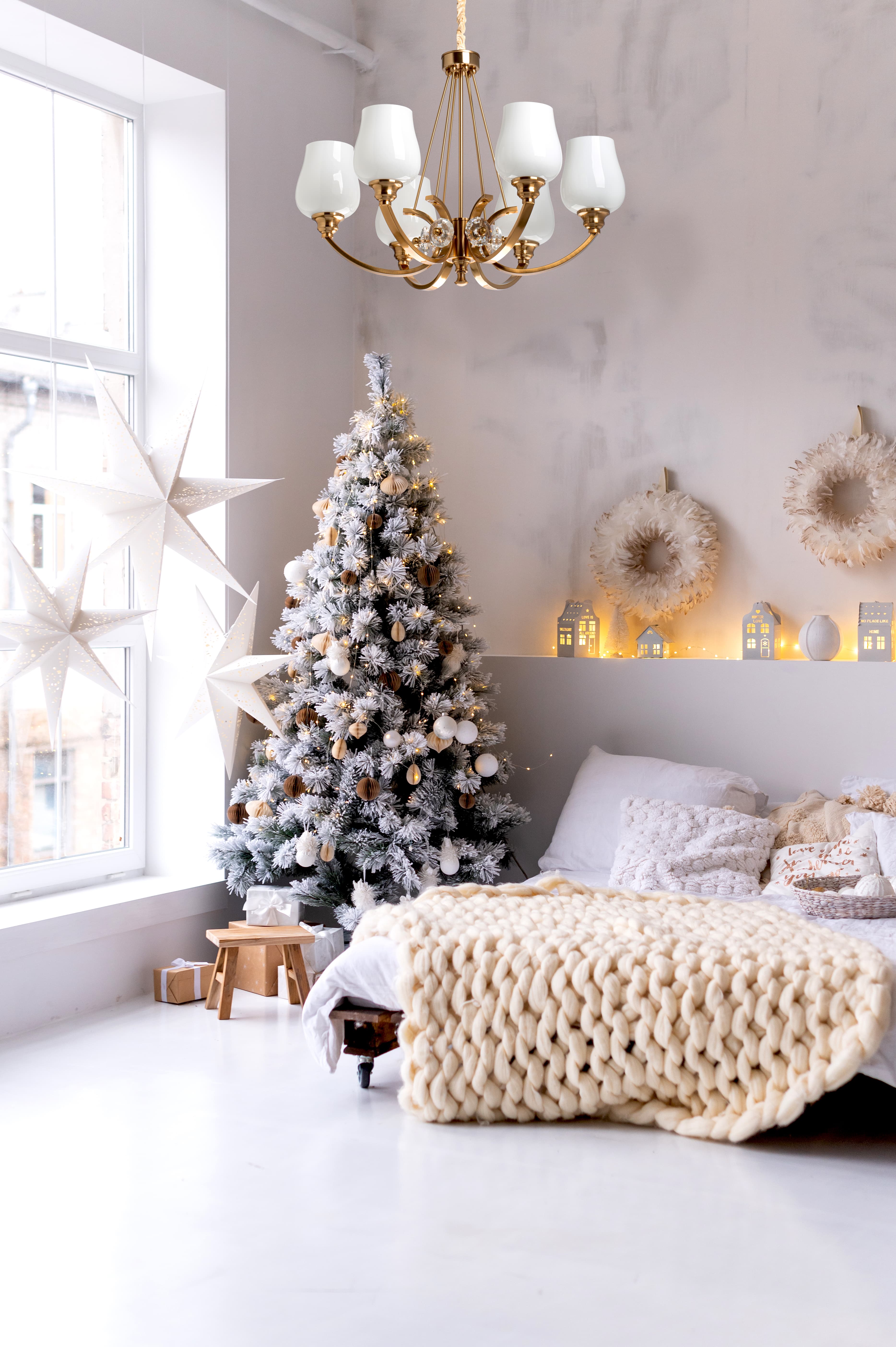 - стеклянные плафоны молочно-белого оттенка обеспечивают мягкий световой поток
