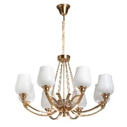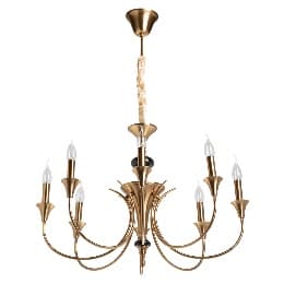 Люстра Палермо: классический дизайн с элементами античного стиля. Основание выполнено из комбинации сплавов металлов и гальванизировано в цвет меди. Рожки созданы из сплава алюминия по технологии художественного литья, декоративные подвесы выполнены из металла по технологии твист. Стеклянные плафоны выдуваются в форму вручную и окрашены в белый цвет изнутри. Корпус светильника декорирован стеклянными розетками, отлитыми в сложную форму.