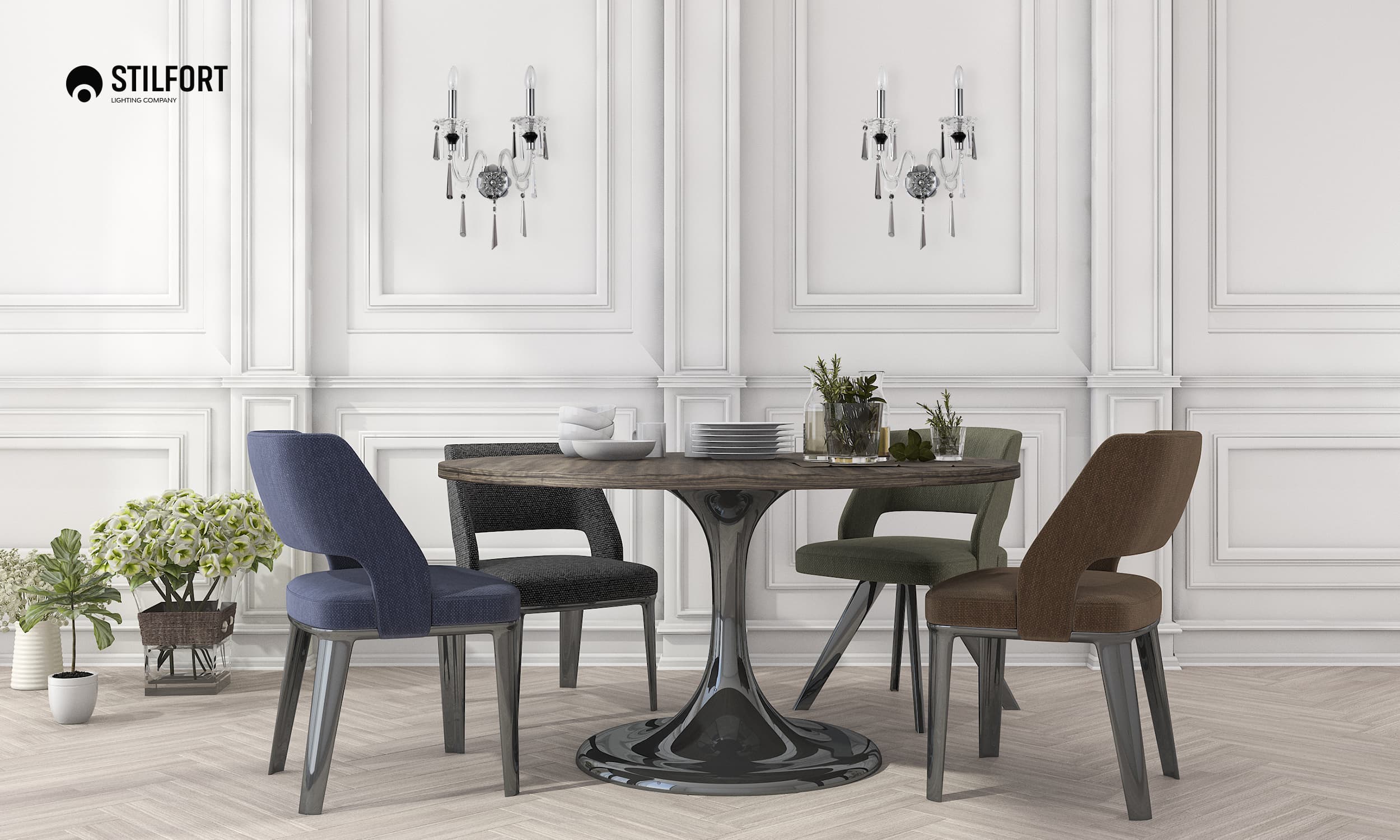 Stilfort - красивый и модный бренд, занимающий своё место в престижной области эффектного светодизайна и декоративного света. В производстве используются передовые технологии и современное оборудование, а благодаря многоступенчатому контролю вся продукция соответствует европейскому стандарту качества.